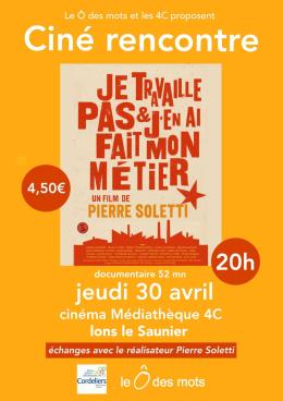 Le Centre culturel communautaire des Cordeliers à Lons-le-Saunier et l'association Le Ô des mots organisent un ciné-rencontre avec Pierre Soletti le jeudi 30 avril 2026 à 20h pour son documentaire Je travaille pas et j'en ai fait mon métier.