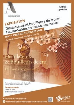 Les archives départementales de la Haute-Saône à Vesoul proposent l’exposition Distillateurs et bouilleurs de cru en Haute-Saône. Du fruit à la dégustation du 1er avril au 31 juillet 2026.