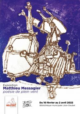 La médiathèque Léon-Deubel à Belfort propose, dans le cadre du Printemps des poètes, l’exposition « Matthieu Messagier : poésie de plein vent » du 16 février au 2 avril 2022.